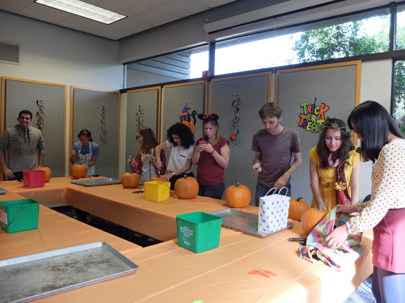 Le Staff d’Oldenborg mais aussi les résidents de langue des autres campus étaient invités. Cela explique les nombreuses citrouilles stockées dans le LRO (notre bureau).