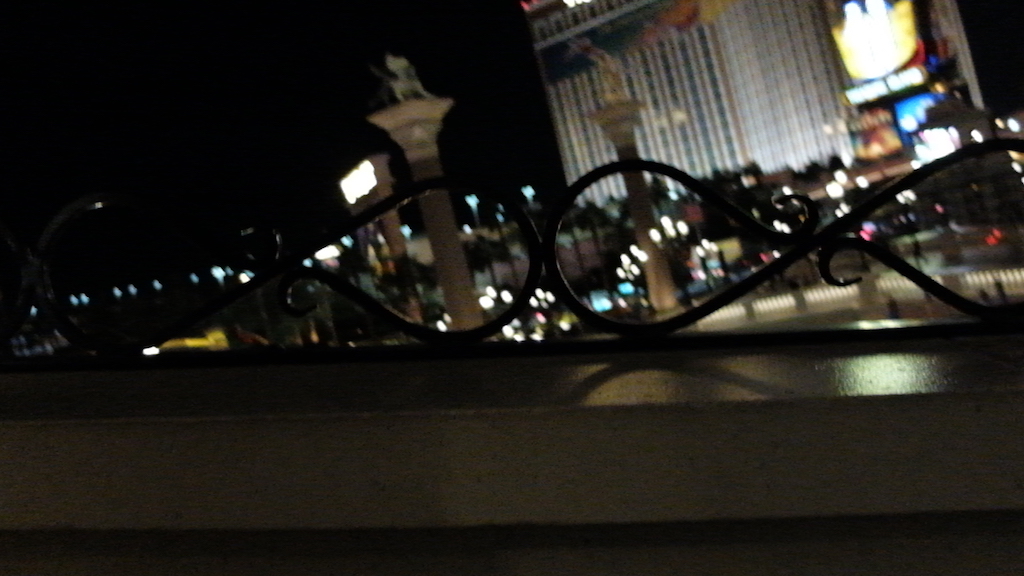 A l’hôtel. Prendre une pause avant d’explorer la ville la nuit. Et je trouve que Sabrina a un charme fou et une classe folle.En route pour « Venise ».Venise envahie par les panneaux publicitaires géants et les néons ? Las Vegas a un air de Californium, le jeu vidéo inspiré de l’univers de Philip K. Dick. Vos repères sont petit à petit brouillés, si bien que vous ne savez plus distinguer ce qui est vrai et ce qui ne l’est pas vraiment.« Venise », le « Palais des Doges » et des pieds qui dansent continuellement.La troublante impression de déjà-vu. Lorsque vous êtes sur la place « San Marco » quasiment déserte, et que vous vous tournez vers le palais, il est presque possible de croire que vous êtes vraiment à Venise. La place des colonnes, du campanile, et la présence du pont du Rialto vous rappellent que ce n’est pas le cas, mais votre cerveau fait quand même quelques noeuds.Au grand complet, équipe italo-franco-hispano-allemande : Marino, Jérémy, Maÿlis, Sabrina, Angela et Martin. Français, toujours en majorité.Sauriez-vous dire si nous sommes à l’extérieur ou à l’intérieur ? Il s’agit d’une galerie géante dans le Caesar’s palace, réalisée comme si nous étions à l’extérieur : faux plafond, faux pavés, lumière d’ambiance pour simuler une promenade nocturne dans une Rome très rétro. Il y a la même une reproduction de la fontaine de Trevi.