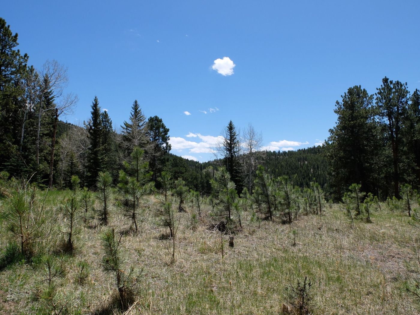 A un moment donné, on sort de la forêt pour se retrouver sur une plaine, sous le soleil.On remarque aussi qu’une certaine maison est plutôt bien placée……et qu’en réalité, ces maisons sont partout !A un croisement, nous nous rendons compte qu’une partie du sentier est fermée pour des problèmes de protection des végétaux. Il est possible de poursuivre la boucle, mais en passant par un chemin qui est au moins aussi long que le Mason Creek Trail. C’était bien trop long, alors nous referons le chemin inverse pour rentrer. Le Staunton Park gardera donc encore quelques secrets pour une prochaine visite…En attendant, c’est pause déjeuner assis sur les gros rochers que vous voyez en face de vous ! La maman de Callie nous aura préparé de délicieux sandwichs suivant une recette de Callie, spécialiste quand il s’agit de faire des paninis à Oldenborg (le secret, c’est le pesto !).Traverser des rivières me rappellera toujours ma randonnée à Bridge to Nowhere dans la Los Angeles National Forest.Des pommes de pins, ça faisait longtemps.Sur le chemin, nous avons été accompagnés par de minuscules mais très brillants papillons tout bleus. Ils étaient extrêmement nombreux, malheureusement, je n’ai pas réussi à prendre en photo ces insectes très vifs.Les « bébé-sapins » côtoient les grands pins. Cela me rappelle un peu la maison de mes grands-parents où les sapins de Noël ont trouvé une nouvelle jeunesse après les fêtes et sont devenus très grands !