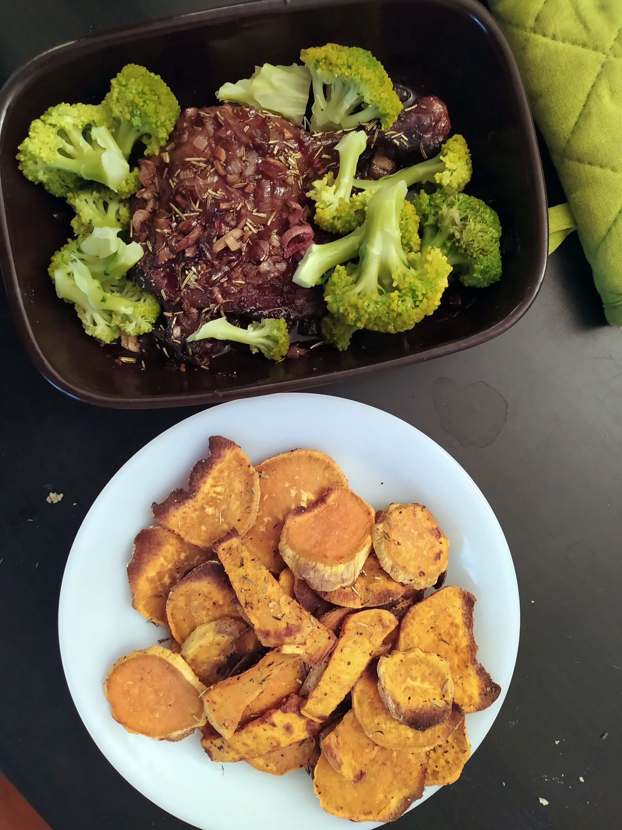 Camembert rôti pour nos week-ends spécial fromage, un fondant au citron et à l’avoine pour la sixième semaine de confinement, une soupe de légumes avec très peu de lait de coco mais déjà trop pour Ryan, et canard à la sauce soja qui rappelle des saveurs asiatiques.