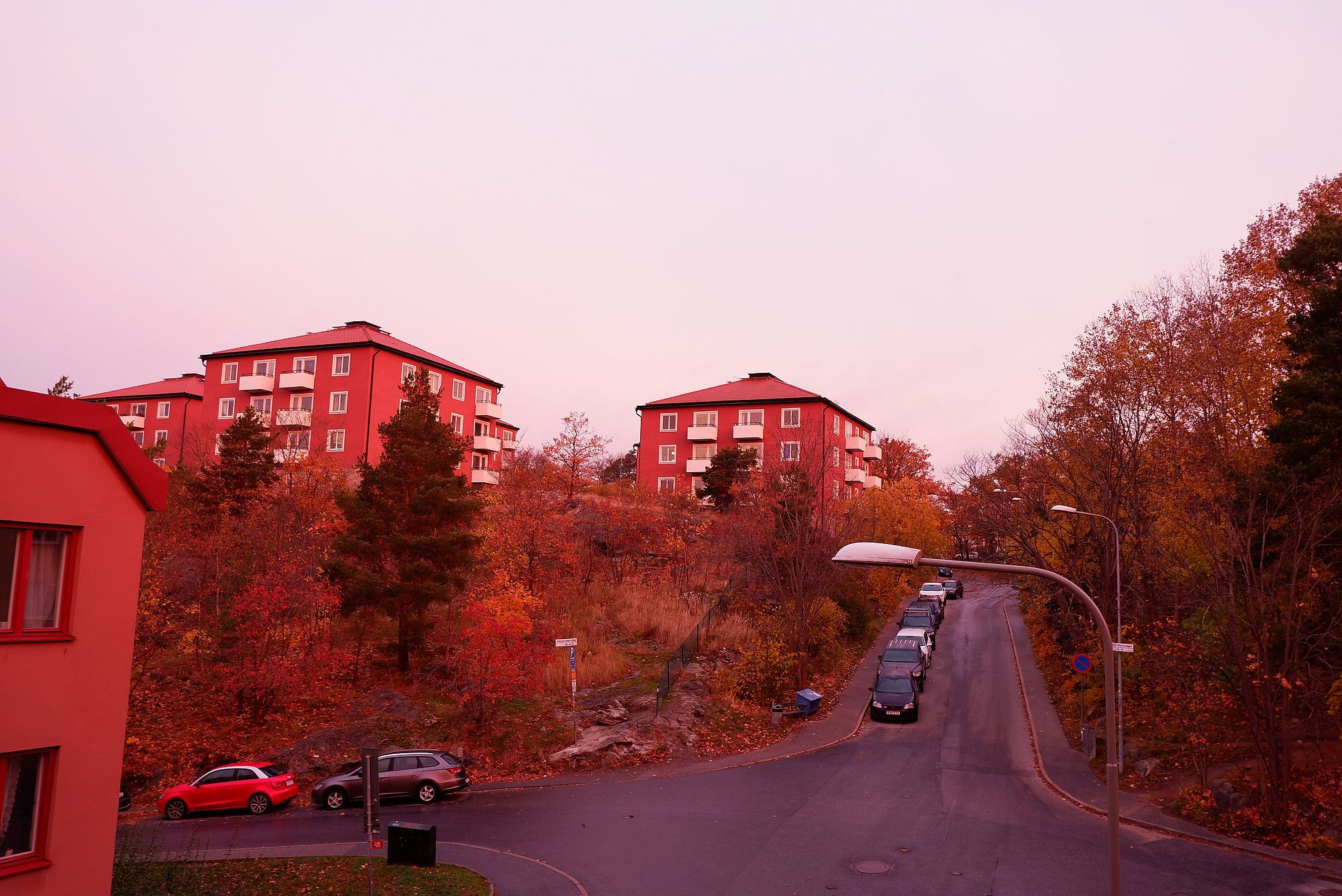 On a tenu le plus longtemps possible avec nos déjeuners sur le balcon les jours de grand soleil, mais il fait désormais trop froid. Le week-end, nous avons définitivement adopté le brunch (et c’est mon repas favori de la semaine !)Un matin, nous nous sommes réveillés dans cette étrange atmosphère rose……et le ciel orné d’un immense arc-en-ciel en demi-cerle quasi-parfait.Le métro de Stockholm est réputé pour les expositions d’art dans ses stations et c’est tellement plus agréable que les immenses et immondes panneaux publicitaires parisiens !Arrivée à Solna où l’architecture nous surprend encore.Il est apparemment très normal de passer au travers d’une forêt pour rejoindre une destination en ville, pour faire ses courses, pour aller au travail, mais je ne m’y suis pas encore habituée.Nous voilà au marché d’automne, en face de l’orangerie du château d’Ulriksdal. Le marché est minuscule et un peu décevant. Sans Swish, l’application permettant de faire des paiements avec son téléphone, il est également impossible d’acheter quoi que ce soit. Voilà un trait particulier de la société suédoise. Il y a une certaine forme d’uniformisation (tout le monde s’habille de la même manière, tout le monde utilise les mêmes produits et outils technologiques) et une mentalité qui rappelle un peu celle d’une ruche : les données personnelles telles que votre adresse (avec un lien vers un site web pour vous envoyer des fleurs), âge, situation maritale, salaire et nombre d’animaux de compagnie sont publiques, les fenêtres n’ont pas de volets et tout le monde est toujours tout le temps au même endroit au même moment. Conclusion : pour un peu de tranquillité, partez dans la direction opposée. Vous serez peut-être jugé.e.s, mais comme les Suédois.e.s sont aussi très poli.e.s, personne ne vous dira rien. Bref, pour en revenir à Swish, le fameux Graal s’obtient en ayant un numéro de sécurité social, un compte en banque suédois et un numéro d’identité bancaire qui ne s’obtient qu’après avoir reçu sa carte d’identité suédoise. On n’entre pas dans la ruche n’importe comment.Même si le marché est minuscule, le parc autour du château vaut le détour ! Ici, on s’aventure dans le « Bosquet de Carl Hårleman », ce dernier étant un architecte suédois du 18e siècle. Voilà donc le château d’Ulriksdal, et sa pendule bloquée sur midi.Comme d’habitude, je trouve que les bâtiments autour du château sont plus attrayants que le château-lui-même. Ci-dessus, l’orangerie devant une colline superbement éclairée par la lumière de fin de journée (peut-être devrais-je dire fin du jour, car à 15h, il reste encore quelques heures avant d’aller dormir).L’orangerie n’est pas visitable, mais j’ai tout de même réussi à en capturer quelques images.Ryan et moi continuons notre balade au bord de l’eau, seuls, alors que la ruche est en train de prendre un café au marché.Paysage paisible dans la lumière automnale : tout à fait ressourçant.Quelques impressions d’automne sur le chemin du retourIl y a plein de magasins de seconde main dans Stockholm, parfois bon marché, parfois très chers. Celui-ci est plutôt accessible et m’a donné envie d’introduire de nouveaux meubles (mais qui sont anciens, enfin, vous voyez ce que je veux dire) chez nous. Je suis tombée sous le charme de ce magasin quand j’y ai trouvé une copie du cheval à bascule de mon enfance ! Sur la photo, Ryan regarde un tabouret bleu, qui est le même modèle que celui que j’ai depuis toute jeune. Est-ce que je deviens vieille…ou vintage ?De retour à l’appartement, avec une vision du quartier assez singulière. Jeudi 18 novembre, 16h15, toutes les lumières s’éteignent. La moitié de Stockholm se retrouve plongée dans le noir et la panne de courant va durer deux heures. Quelle drôle de sensation, surtout qu’à 16h, il fait déjà nuit noire. J’allume les trois bougies que nous avons, tente de faire un peu plus de lumière en combinant une lampe torche et la carafe d’eau… et me dis que nous n’avons pas forcément eu la meilleure idée du monde en rangeant les lampes frontales dans une boite fermée en haut d’un placard. Disons que lorsqu’on m’a dit que l’hiver était sombre en Suède, je ne m’attendais pas vraiment à ça…Heureusement, les couchers de soleil sont toujours uniques et fascinants… Pour terminer, quelques souvenirs de l’été avec ces photographies de notre ami Stéphane prises pendant notre premier cours de danse donné à Stockholm. C’est l’occasion pour moi de partager avec vous un chouette projet en 2022 : Ryan et moi allons donner des cours de danse réguliers et on attend ce moment avec beaucoup d’impatience et d’enthousiasme !