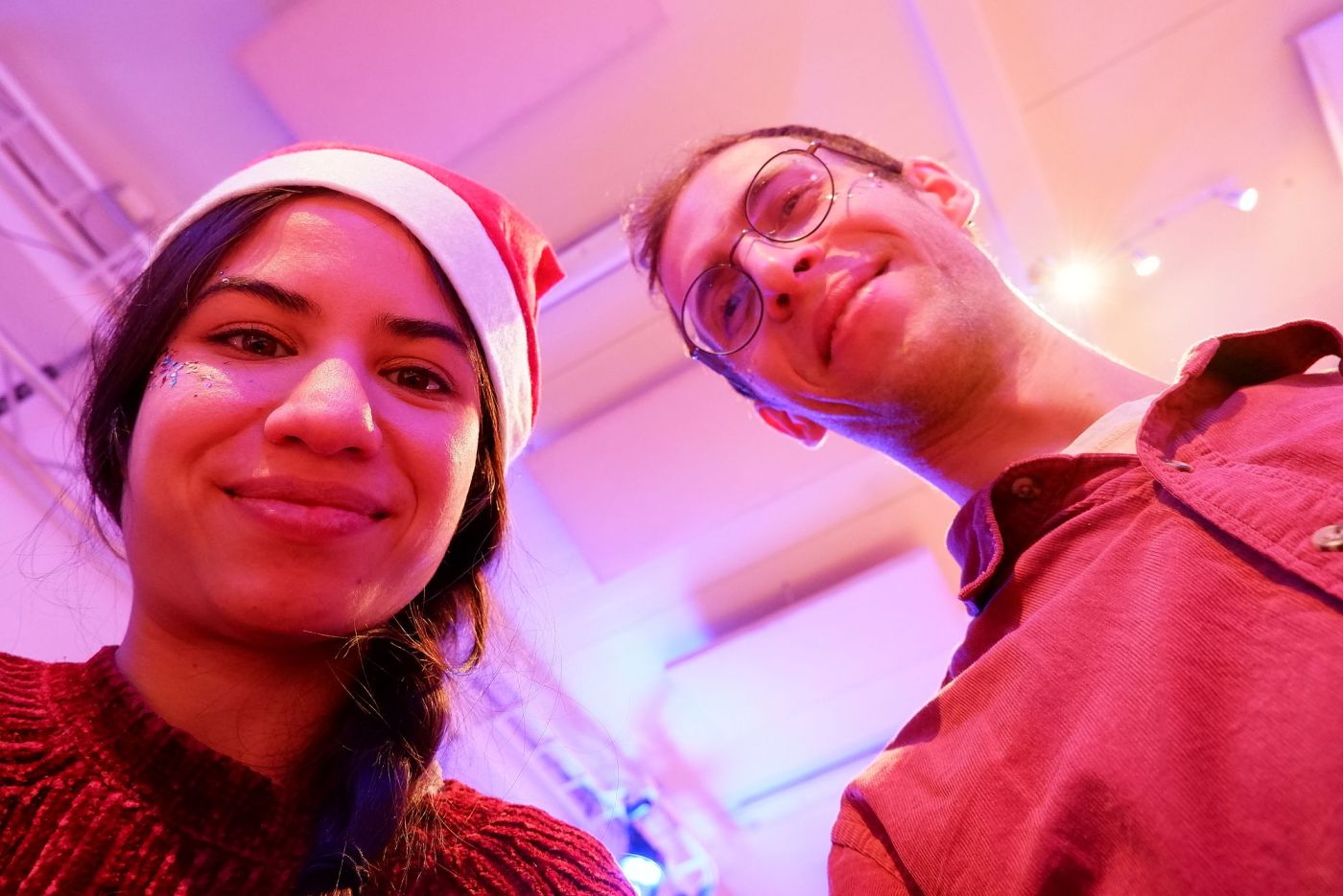 Et puis là, c’est nous avec nos habits rouges de Noël et plein de paillettes ! Belle année 2022 à toutes et à tous !