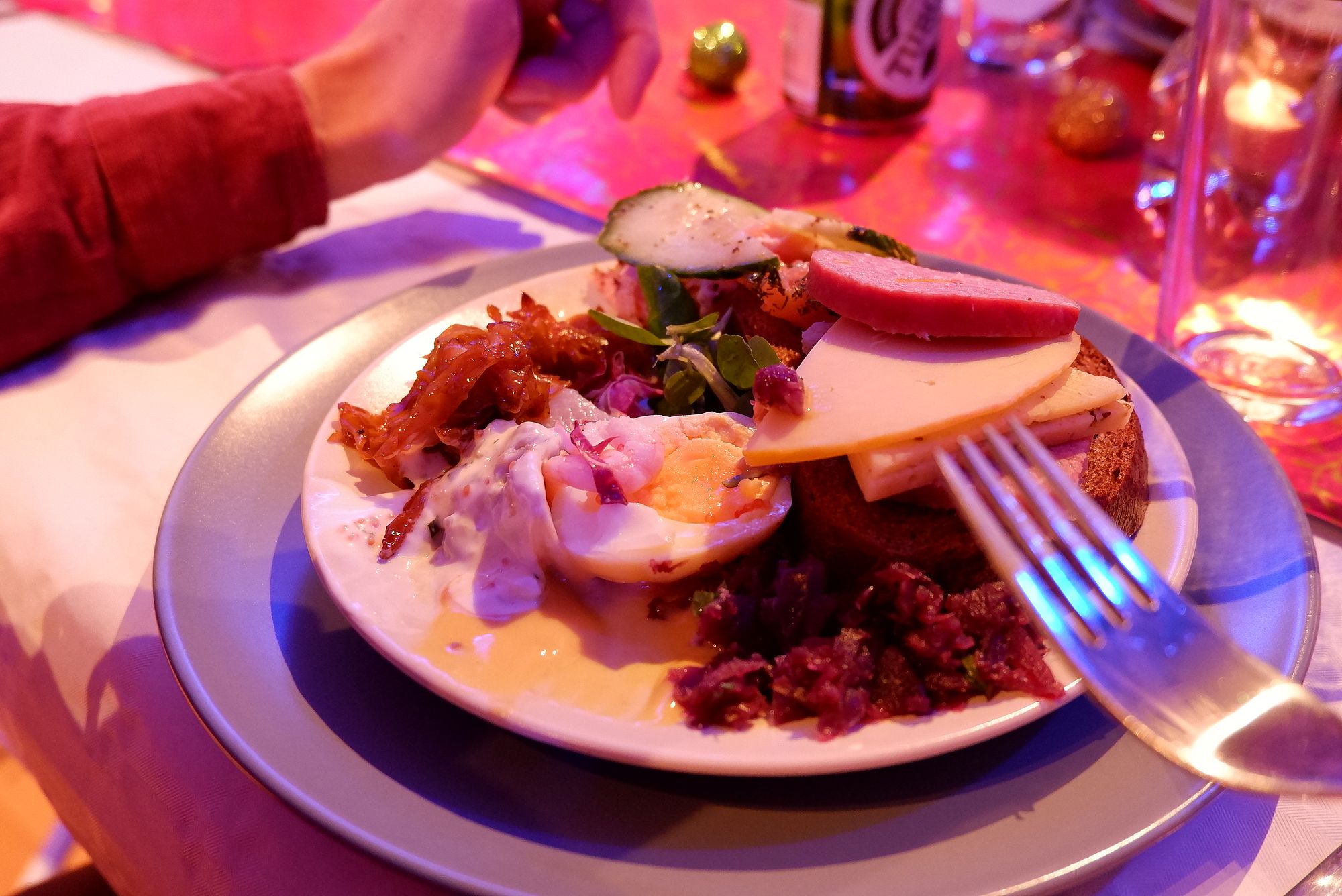 C’est donc le buffet de Noël traditionnel suédois, celui que les locaux mangent généralement le 24 décembre pour le déjeuner. Il y avait beaucoup de viande, de poisson et de pomme de terre… et c’est vraiment tout ce que je peux vous en dire car parfois, je n’ai pas su ce que je mangeais. Mais j’ai goûté à tout (et fait une croix sur le végétarisme ce jour-là pour pouvoir le faire !) et étant de nature assez curieuse quand il est question de nourriture, j’ai adoré pouvoir tester des choses vraiment différentes.