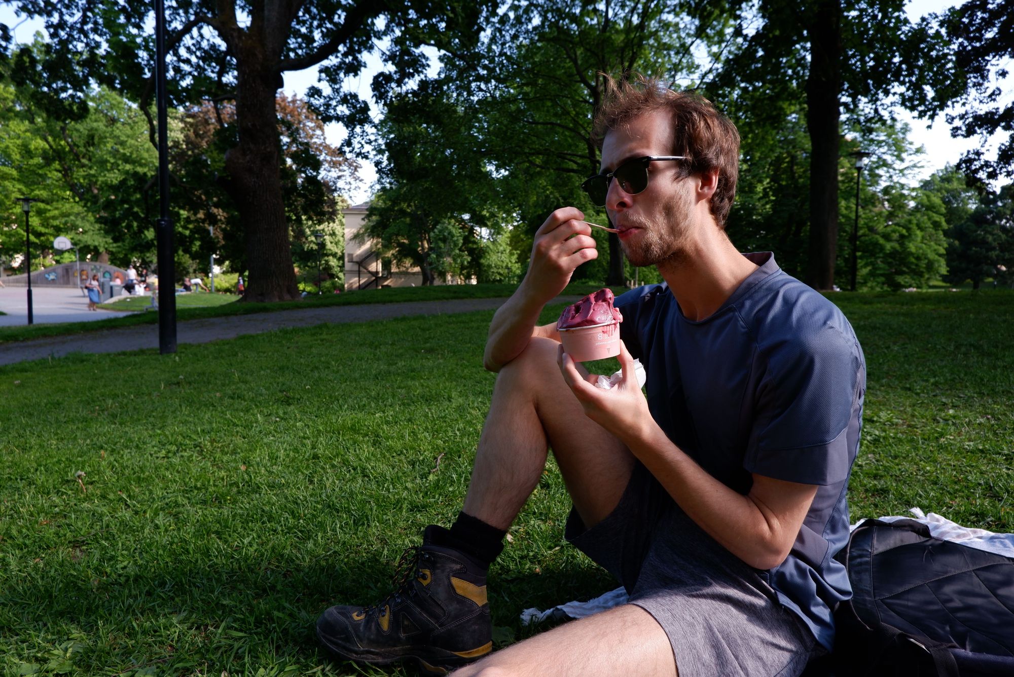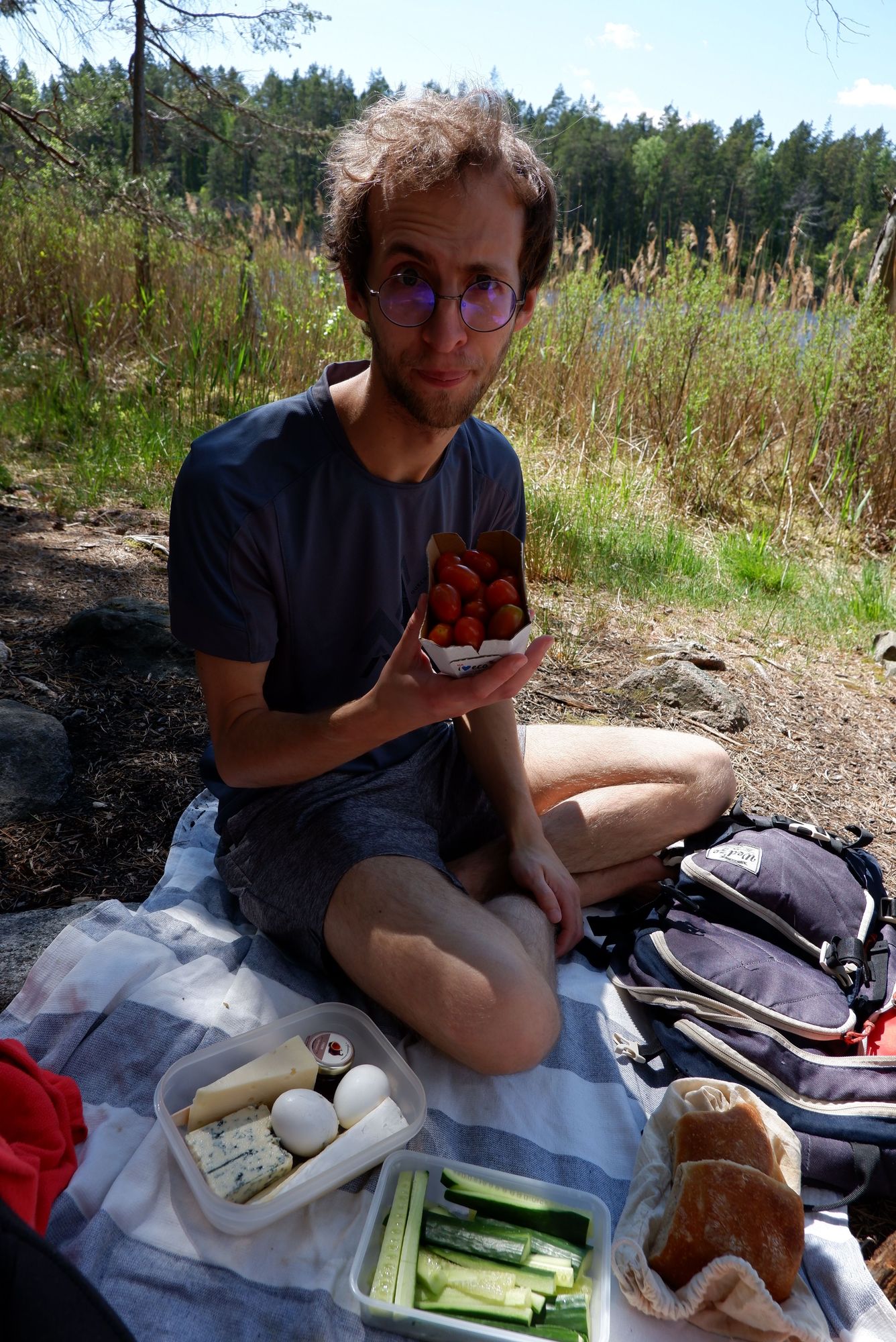 L’heure du pique-nique ! Ce sont les premières tomates de la saison (qui viennent de Suède !).Jolis spots de baignade en compagnie des canards… mais j’ai oublié mon maillot de bain.Mon cliché préféré de notre randonnée à Tyresta !Après Tyresta, on décide de retourner en ville pour aller manger une glace. Je profite du fait d’avoir mon appareil avec moi pour capturer une des installations artistiques qui font le charme du métro de Stockholm.Nous sommes allés chez Snö, que beaucoup vantent comme le meilleur glacier de la ville. Il faut faire la queue pendant une demi-heure pour une glace… et finalement, je ne sais pas si ça en vaut vraiment la peine. Je me rappelle souvent des parfums de glace que je prends au cours de mes voyages quand elles sont vraiment excellentes (je me souviens de presque toutes celles que j’ai goûtées en 2018 à Portland avant de rentrer en France !) mais là, j’ai un trou de mémoire. Ryan pense que c’est parce que trop de parfums se mélangent ensemble… Bref, pour le moment, ma glace favorite à Stockholm, c’est Magnus Johansson (ah, testez donc celle au basilic !) !En ce moment, mes nuits sont coupées en deux : je me réveille systématiquement une fois entre deux heures et quatre heures du matin et j’ai l’impression de faire deux grosses siestes au lieu d’une nuit complète. J’ai pris cette photo à trois heures du matin… Le concept de promenade nocturne perd un peu de son sens ici.Le 6 juin, c’est la fête nationale suédoise, mais c’est aussi le jour où l’on a signé l’achat de notre futur appartement ! Déménagement en septembre, l’excitation est toute douce : on fait des plans pour la cuisine, pour le coin repas, pour l’immense jardin qu’on aura sur le balcon (oui, oui…) et j’ai hâte de faire des pique-niques et des séances de yoga dans le parc juste en bas de chez nous !