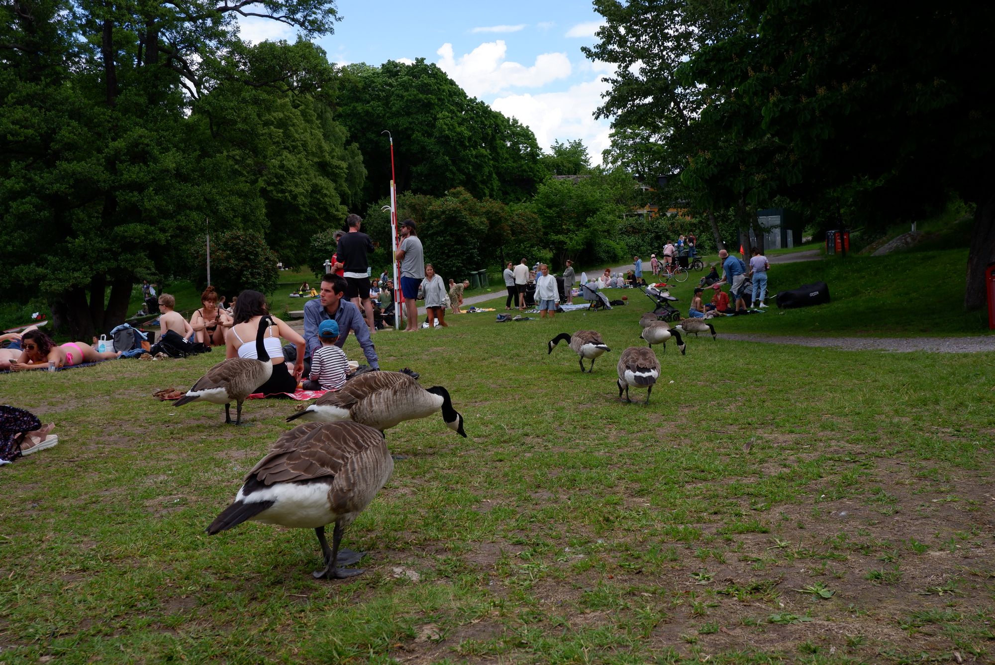 Pour vous dire à quelle point j’étais absorbée par nos conversations, j’ai complètement zappé de prendre des photos (les deux fois !) alors à la place, voilà quelques oies sauvages, un peu bruyantes, qui venaient nous interrompre de temps en temps…Tout le monde dehors, tout le monde au bord de l’eau ! On peut se baigner partout à Stockholm, c’est impressionnant !Sprallen, là où nous avons passé une partie de notre été l’année dernière pour danser en plein air. Le dimanche, on y danse le forro… et bien sûr, comme partout à Stockholm, on peut aussi se baigner juste à-côté !