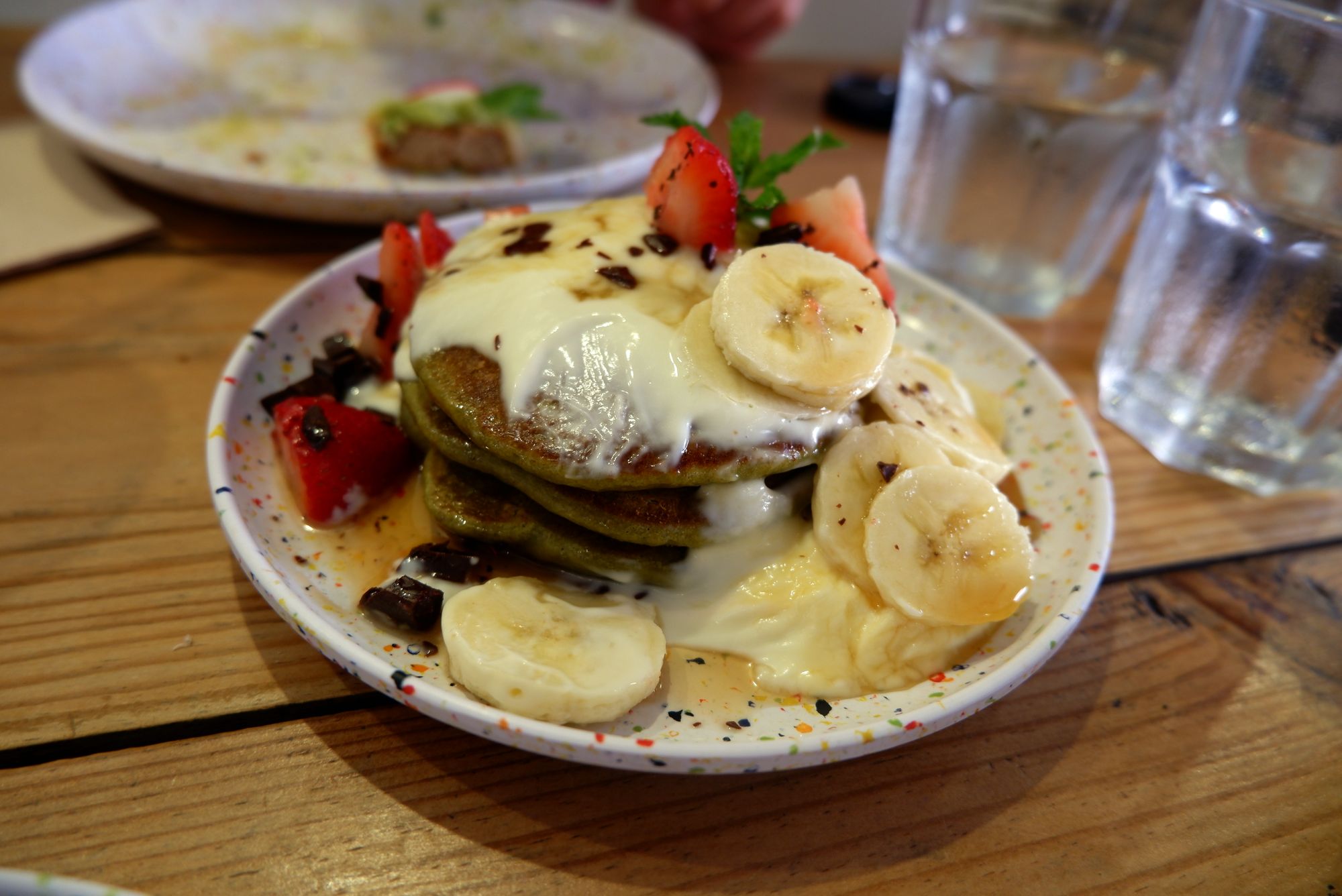 Premier stop, le Bluebell Coffee. J’en avais fait mon QG pendant mon premier séjour à Valencia et je me rappelais encore des pancakes à la farine de riz et au matcha, les deuxièmes meilleurs pancakes au monde (après ceux de PicNic).