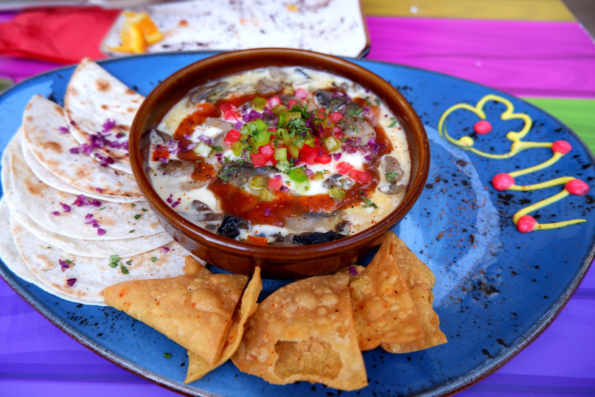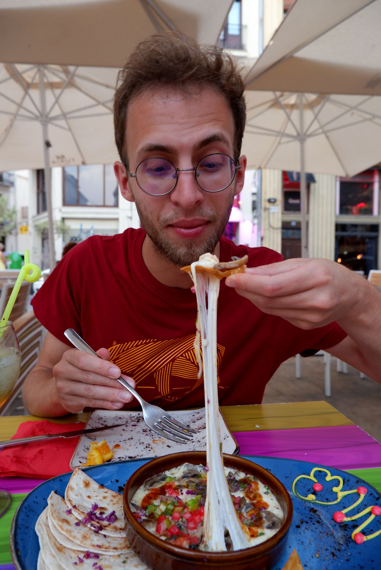 Assiettes colorées, et fromage fondu : on se régale ! Je vous épargne la photo de Ryan en train de lutter avec les fils de fromages pendus à sa bouche…
