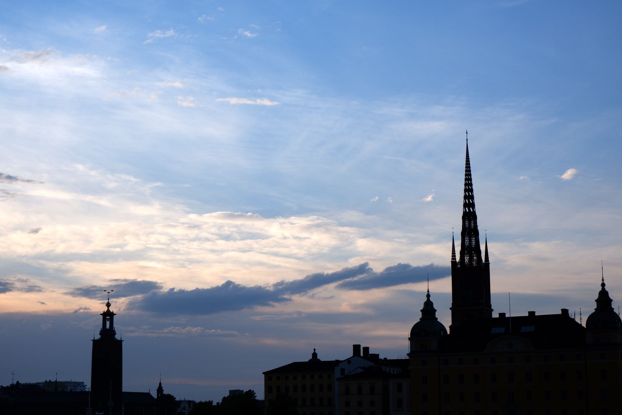 Autour de Slussen, je prends le temps de faire ce qu’on prend généralement peu le temps de faire dans sa ville : du tourisme ! La lumière est magnifique, et l’église de Riddarholmen fait de jolis jeux d’ombres face au ciel !