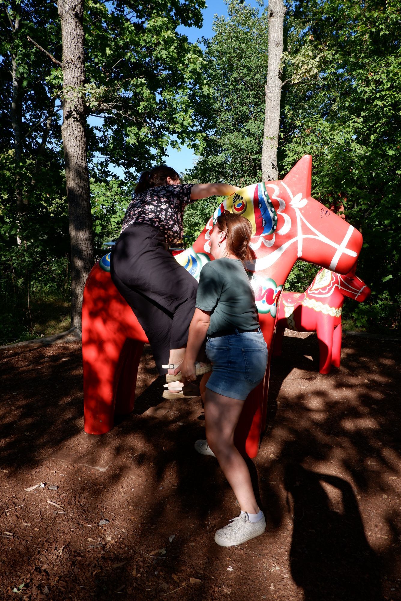 Entre petits, il faut savoir s’entraider pour prendre un peu de hauteur. Opération « Chevaux de Dala » réussie et j’adore la complicité entre les deux soeurs : ce mimétisme est vraiment amusant à observer !
