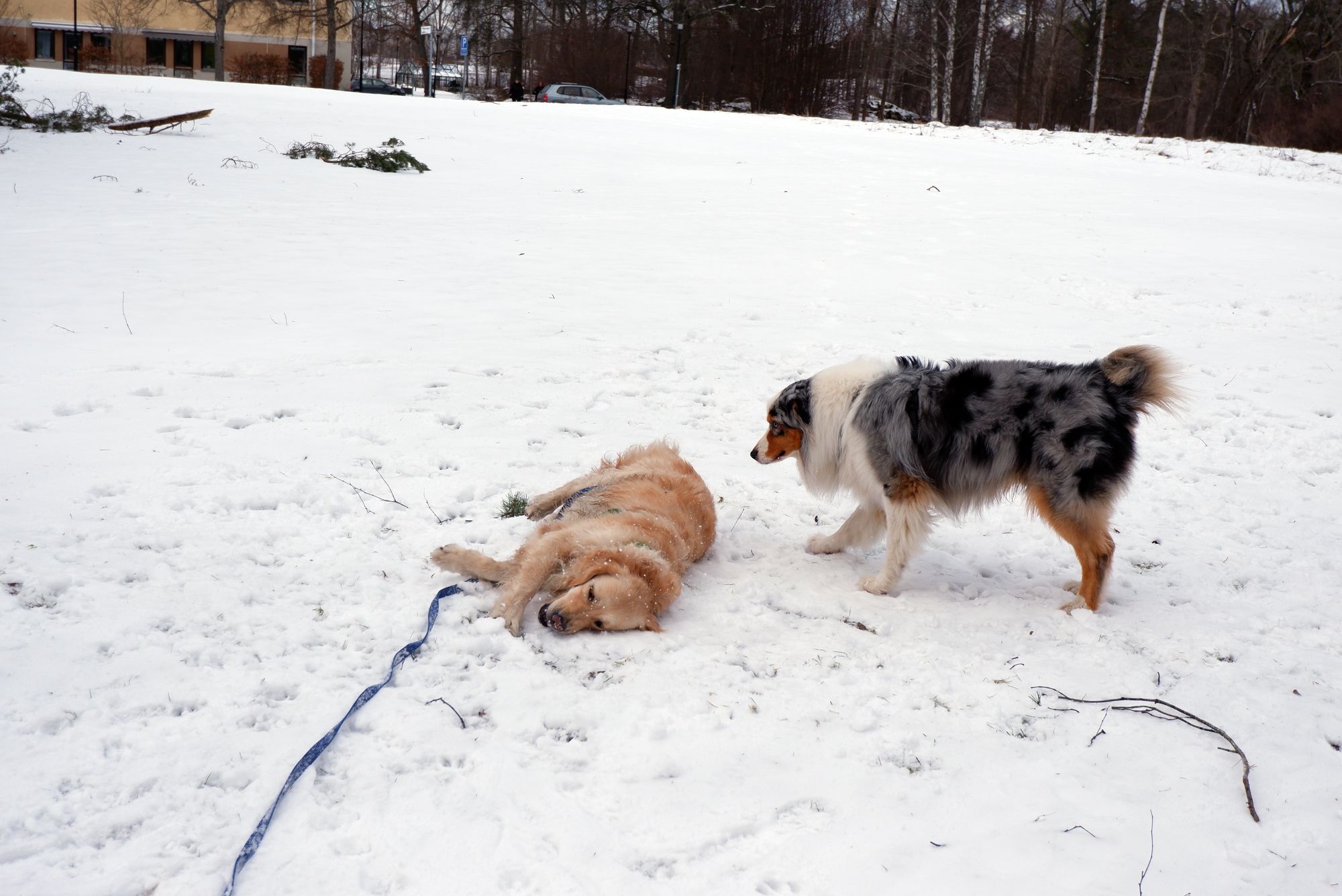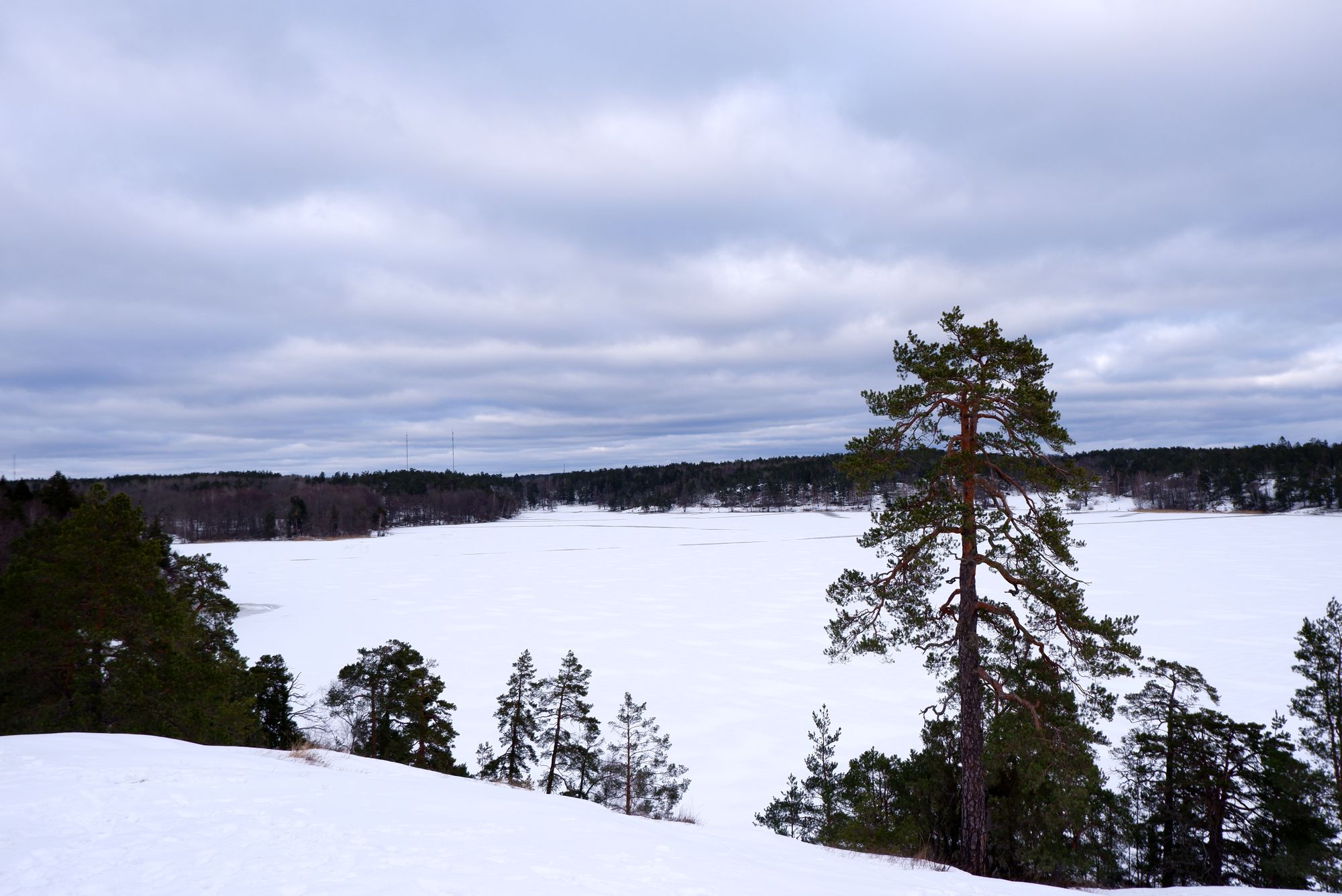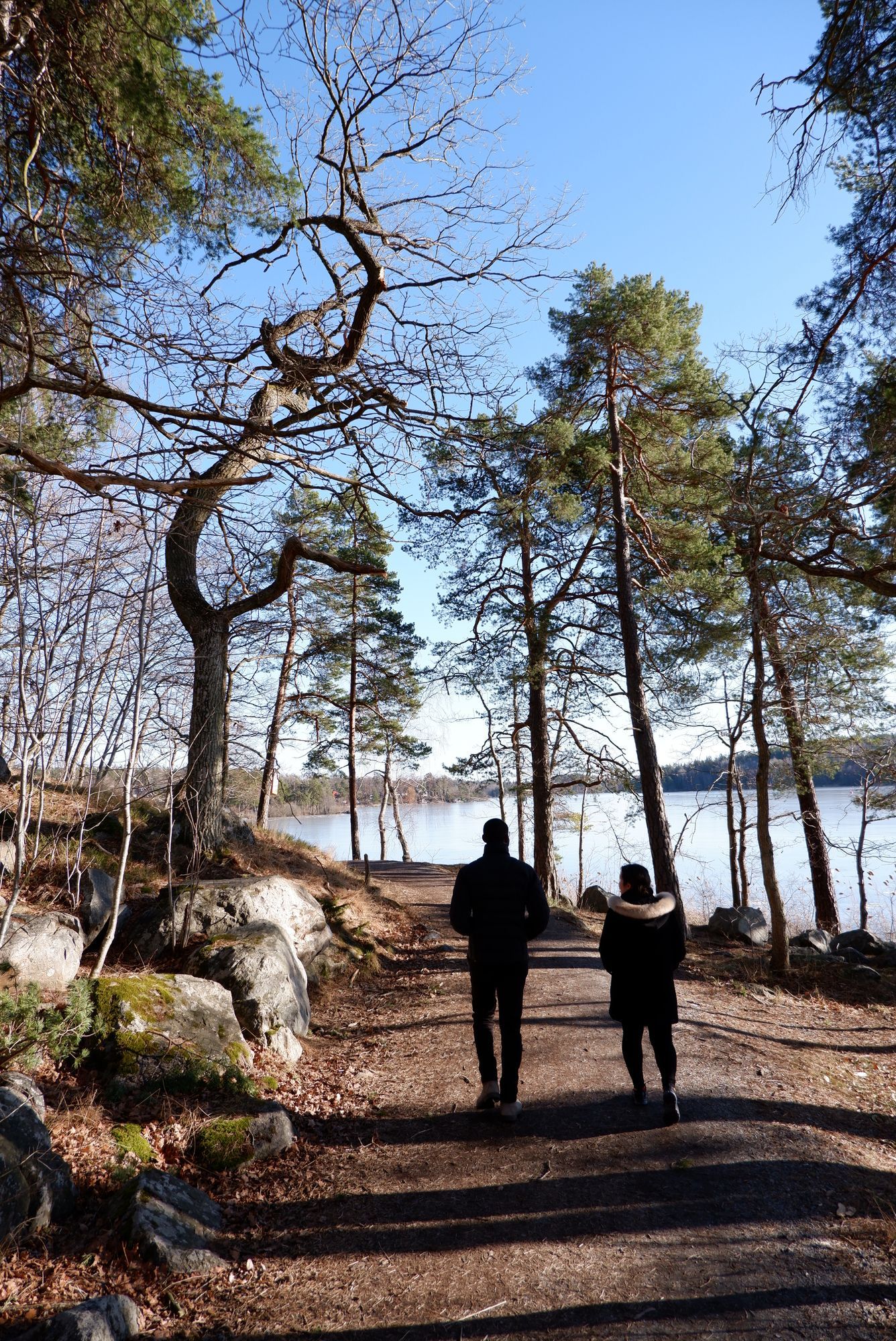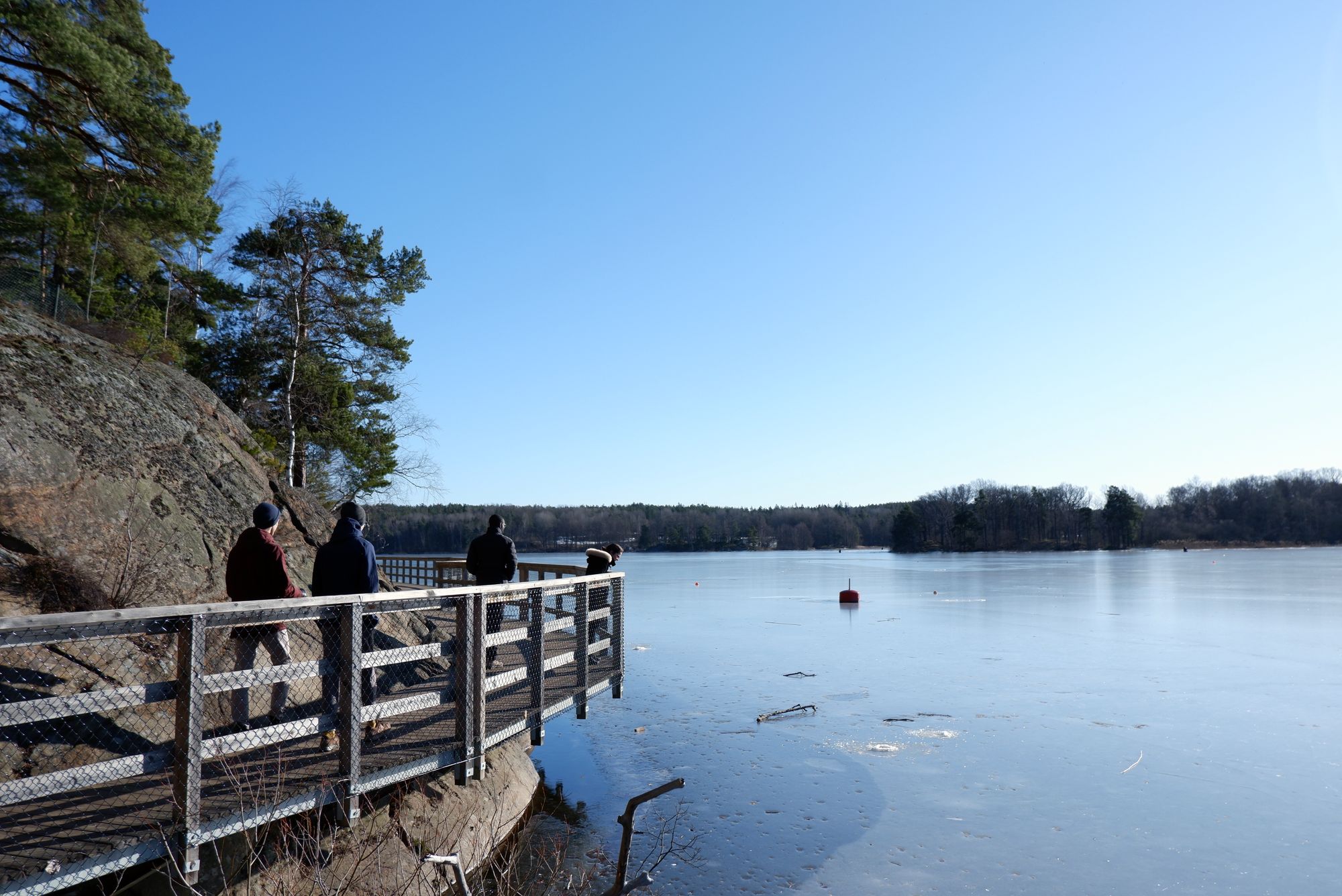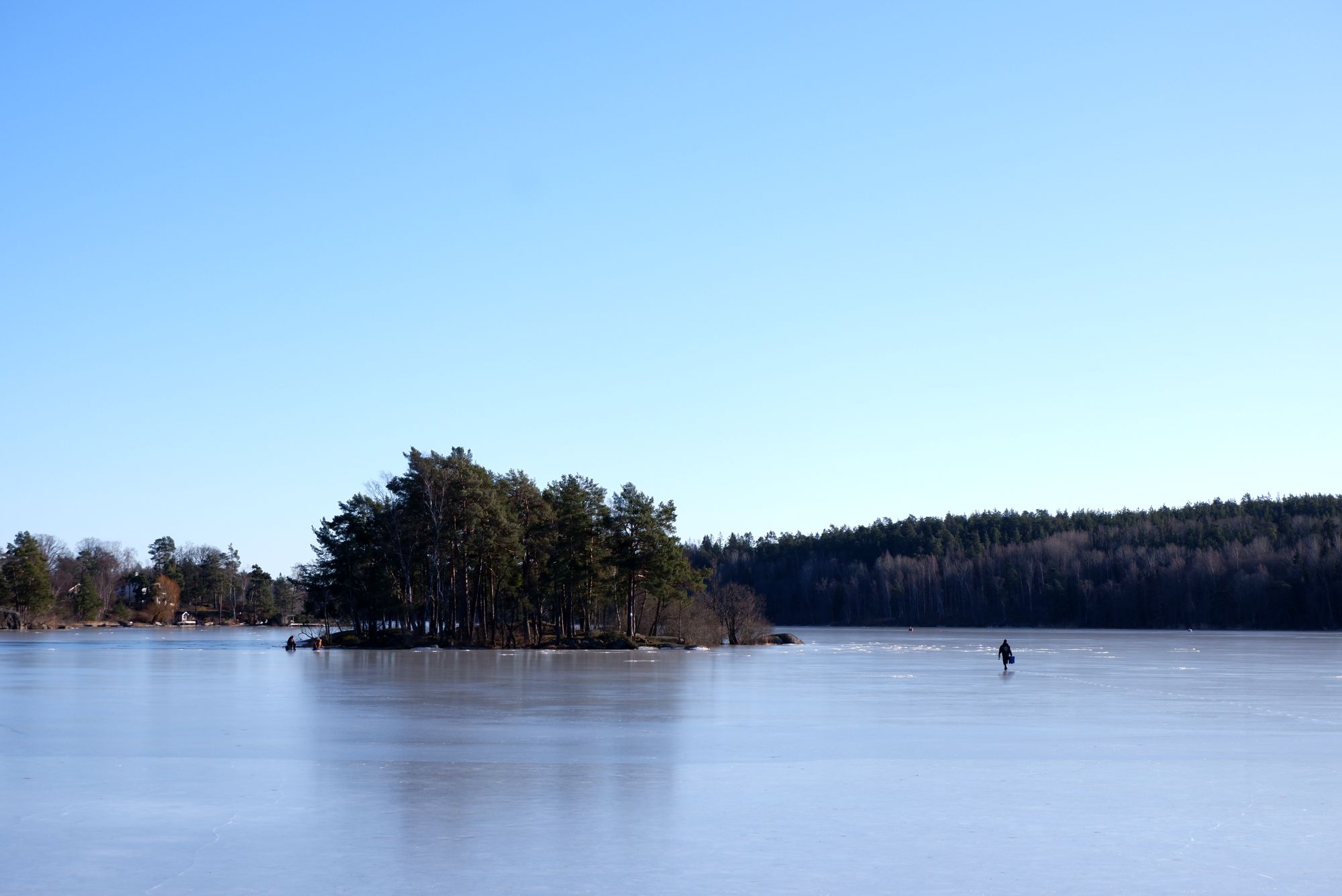 On profite du beau temps pour se promener au bord du lac de Farsta, complètement gelé.