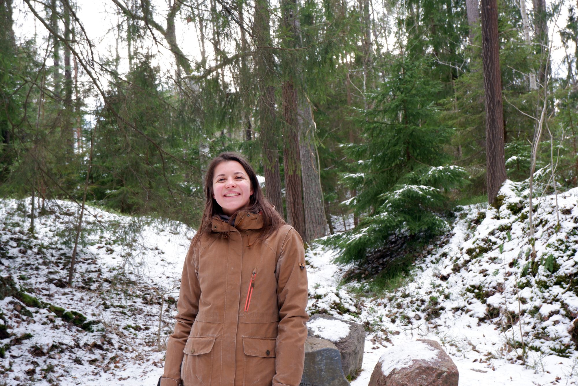 Une promenade dans les tons gris, vert et marron. Sur la photo au milieu, il est écrit « le rocher le plus banal de Flaten »… mais qu’on prend tout de même en photo !