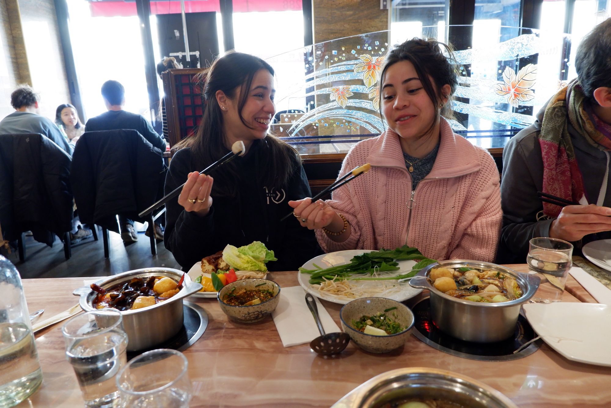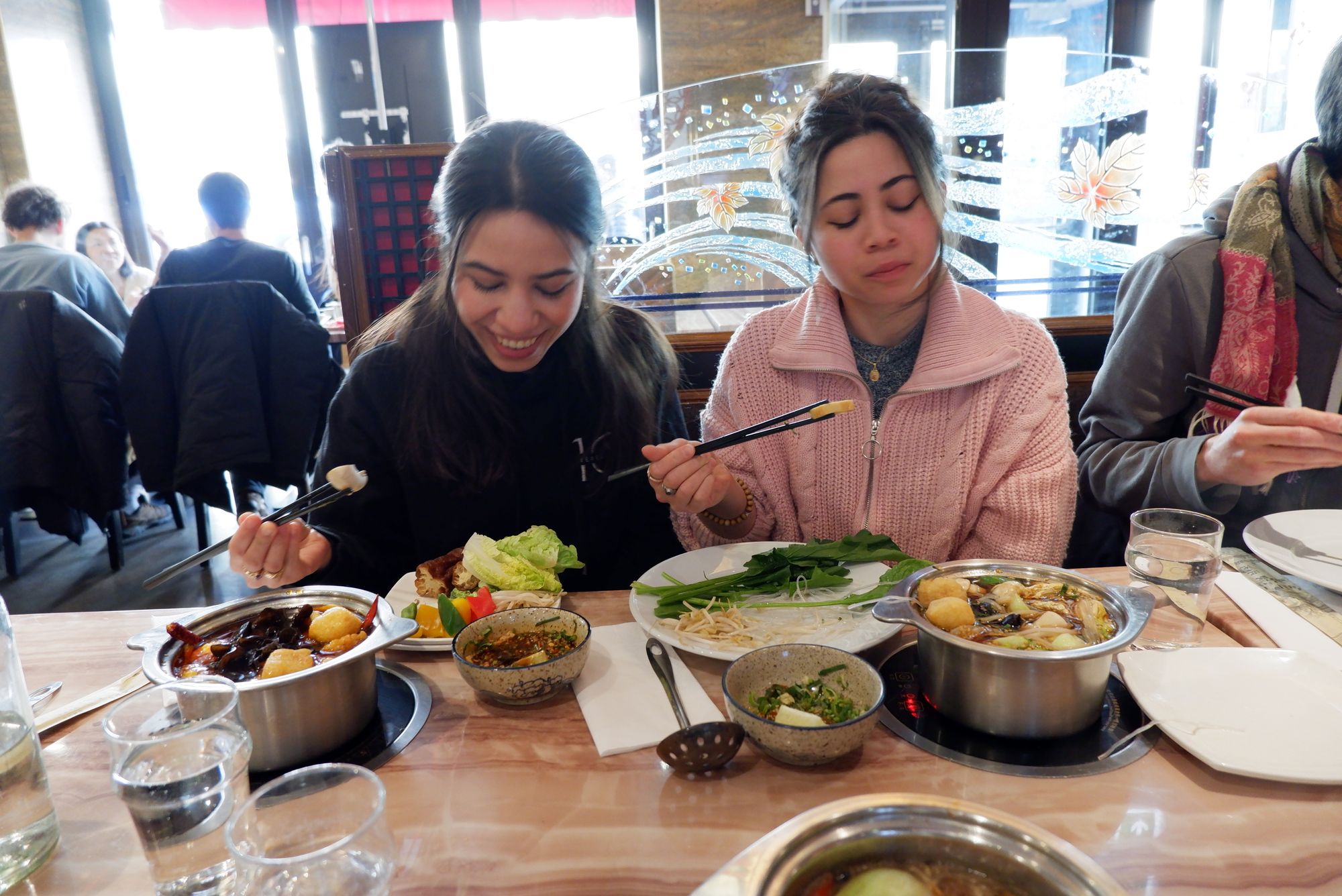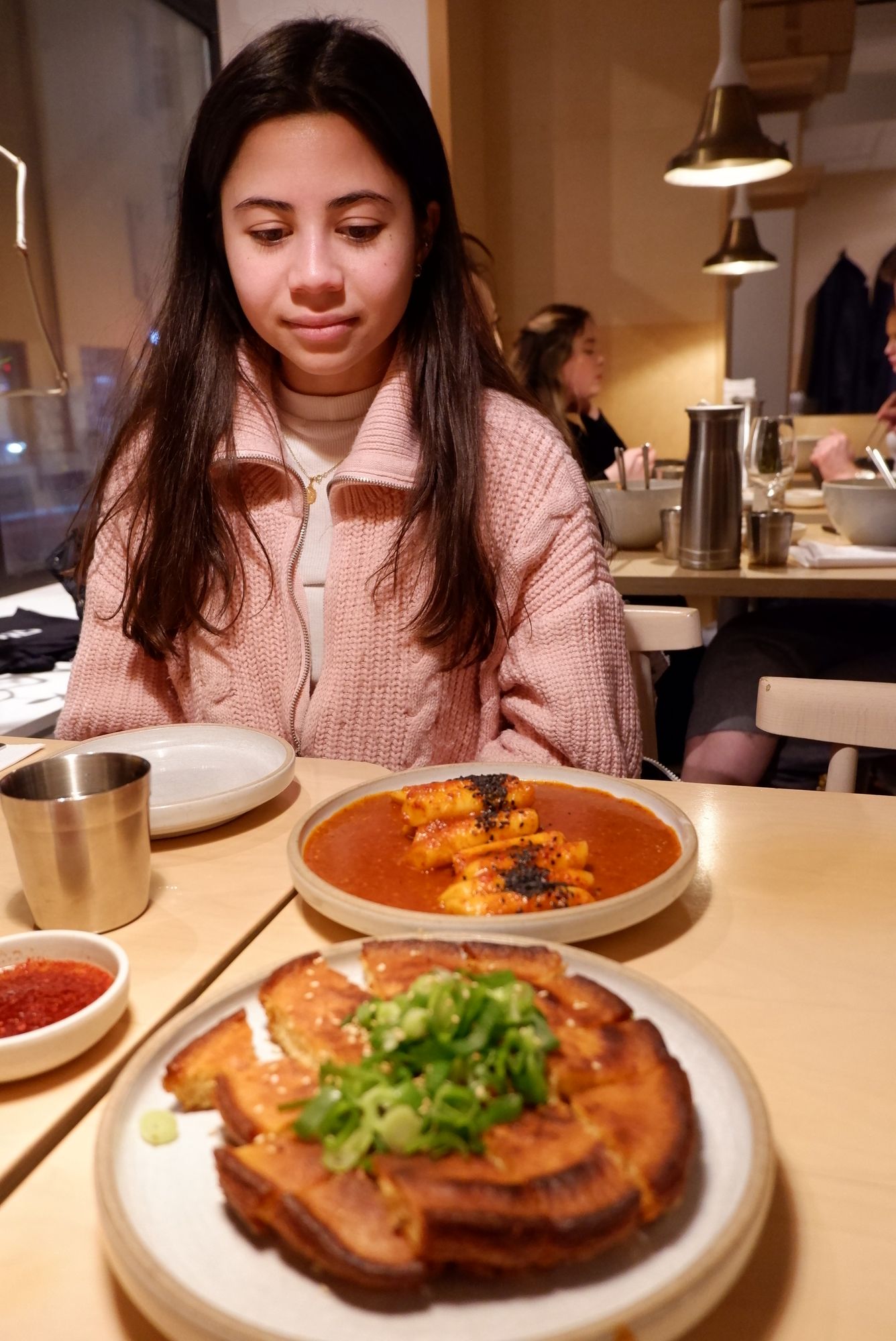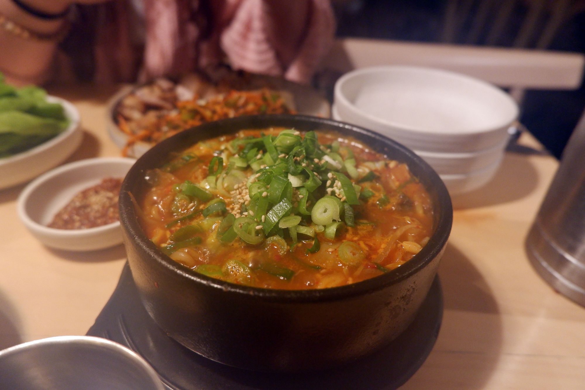 Pour la première soirée d’Andréa, on a évidemment réservé une table dans un restaurant coréen, Madam, chaudement recommandé par une collègue. Au menu, pancake de kimchi, tkeokbokkis en sauce, viande très tendre, et cette incroyable soupe haejangguk (soupe pour gueule de bois). Tout était délicieux (ah cette soupe !) !