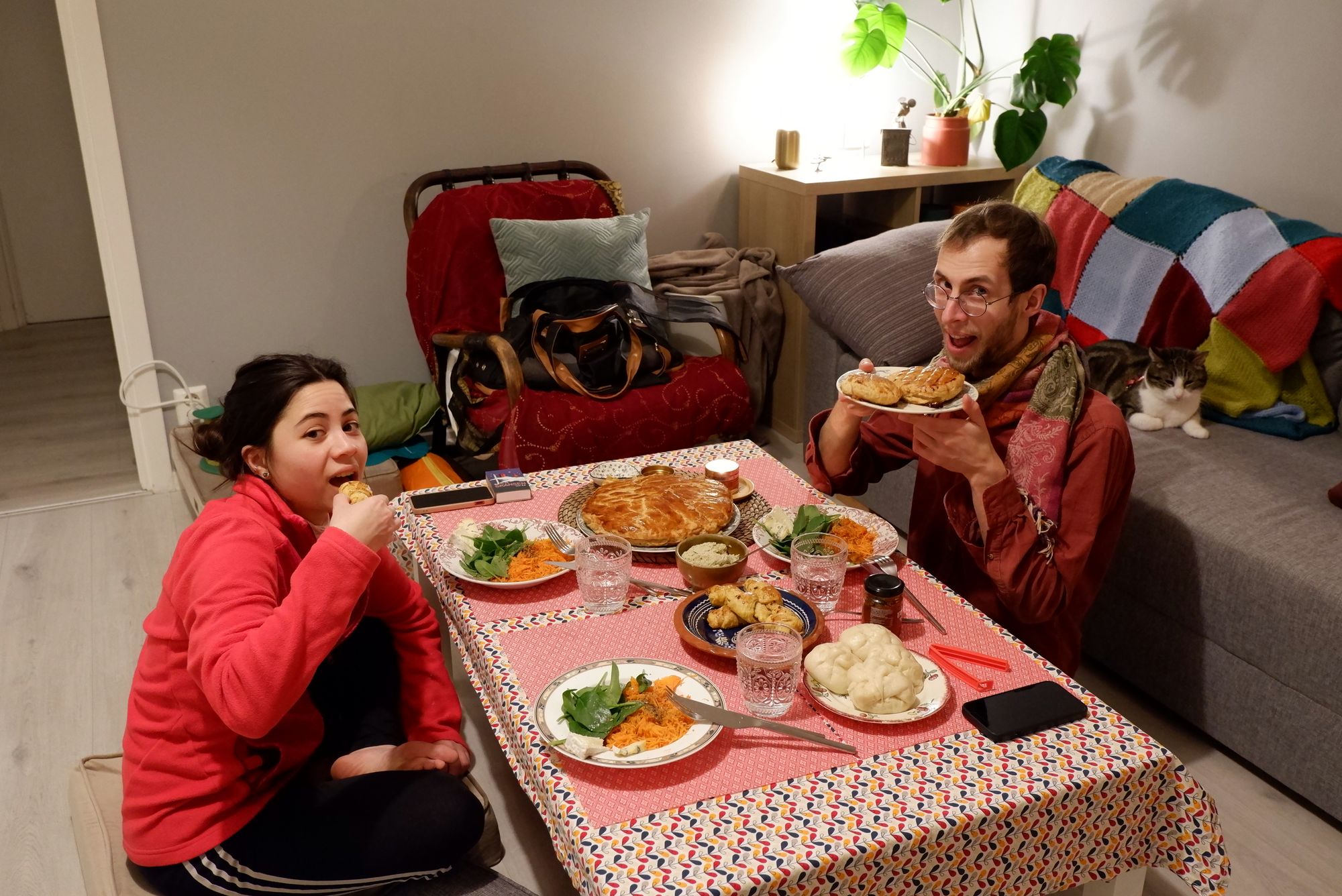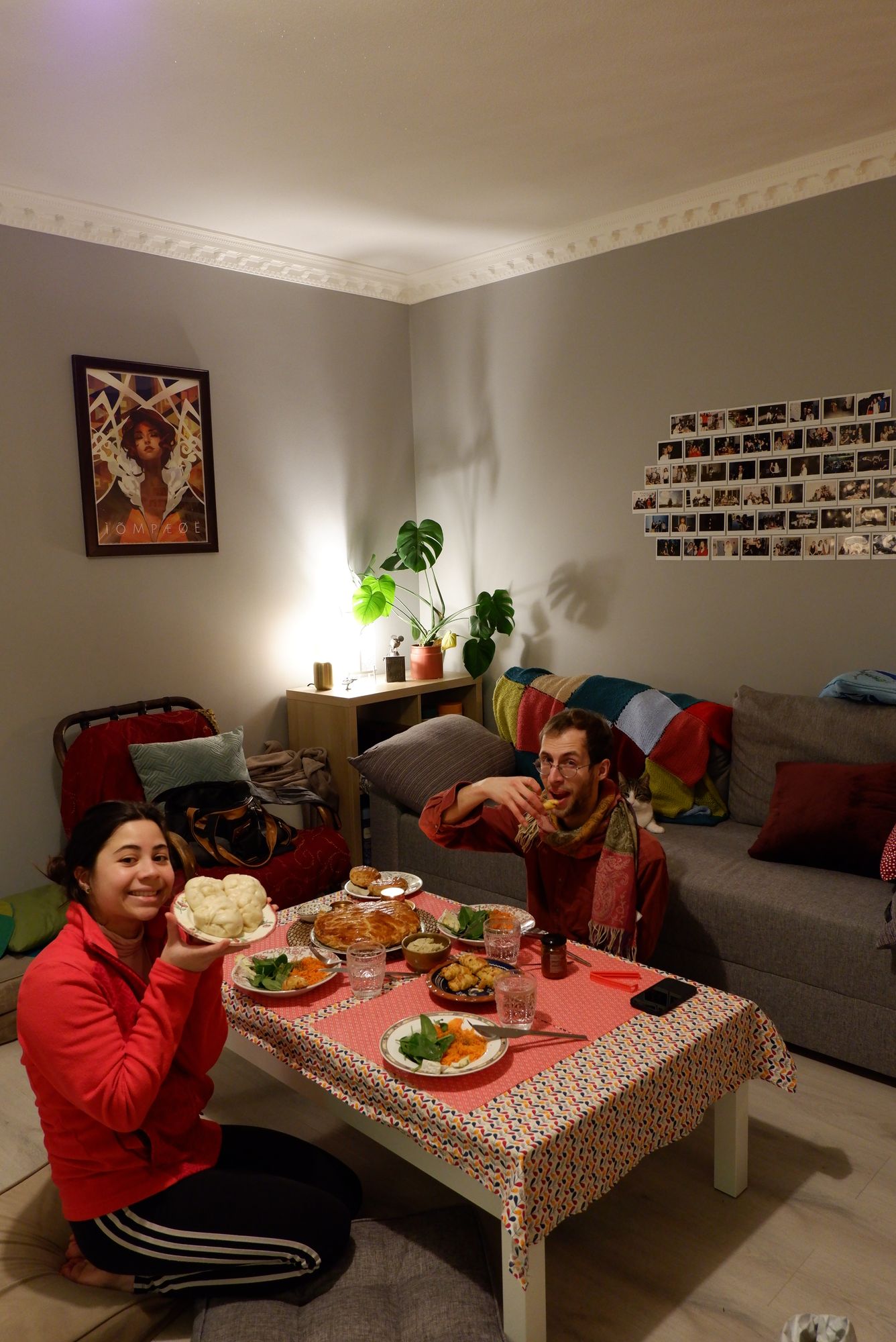 J’ai fait une pause dans l’écriture de cet article pour aller dîner, car cela devenait compliqué… Me revoilà. Vendredi, je télétravaille tandis qu’Andréa s’affaire dans notre cuisine pour préparer une galette des rois maison (j’en rêvais depuis le mois de janvier, c’est vraiment une de mes pâtisseries préférées) et des baos fourrés à la crème pâtissière à la noix de coco. Incroyable dîner : pourquoi sommes-nous allés au restaurant la veille déjà ?
