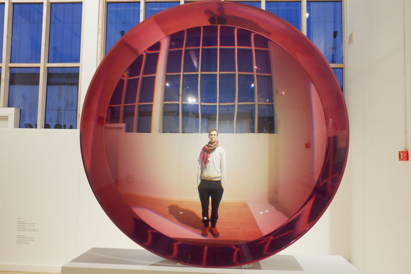Au Copenhagen Contemporary, nous sommes allés visiter l’exposition Light And Space, en référence à un mouvement créé par des artistes américains dans la région de Los Angeles autours des années 1960-70. A gauche, untitled (parabolic lens) (1971) par Fred Eversley. A droite, Magic Mirror Pink #2 (2013), par Ann Veronica Janssens. Jeux de lumière, de couleurs, illusions d’optique et installations immersives : je suis dans mon élément !