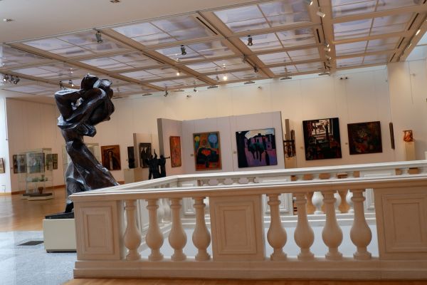 A défaut de serres et de jardins botaniques, nous sommes allés à la découverte des musées de Minsk et notamment celui des beaux-arts. Pendant mes études en histoire de l’art, on étudie majoritairement l’art européen, mais il est vrai que l’Europe de l’Est est déjà une forme d’exotisme dans nos programmes, à quelques exceptions près (là tout de suite, je pense à Malevitch et au Suprématisme par exemple). Alors qu’est-ce que ce musée a à nous offrir ? Déjà, j’avais vu sur Internet que les gens se plaignaient de la petite taille, ce qui est vraiment surprenant, car nous y avons passé un bon bout de temps ! Le musée est divisé en deux parties, un peu comme à Nantes : un édifice très moderne pour l’art contemporain et un autre plus ancien. Plus amusant encore, lorsqu’à Nantes, tout est lumineux depuis la rénovation du musée, à Minsk, on distingue encore ce contraste entre tradition et modernité, le tout dans une atmosphère mélancolique avec parfois des éclats de couleur. Un reflet de la ville, somme toute…