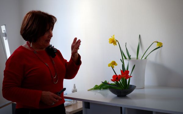 Après une année à étudier le japonais quinze heures par semaine, j’essaie vraiment de faire en sorte que ce ne soit pas des efforts vains. Alors, en plus d’ouvrir mes livres de temps et de réviser mes kanjis, je sors voir des expositions et tester des ateliers. J’avais envie de tester l’ikebana, l’art floral japonais et l’Association jeunesse France-Japon proposait un atelier dans ses locaux animé par Christine Gouy. En plein week-end des Folles Journées, pendant que mes colocataires allaient voir des concerts, j’allais de mon côté discuter avec des narcisses et des tulipes.
